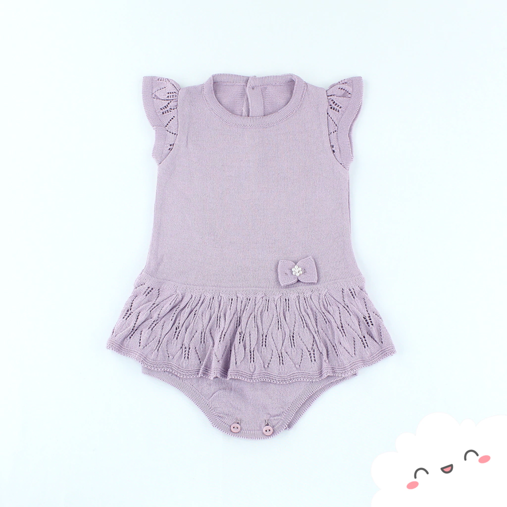 O body feito de tricô 100% antialérgico macio e delicado com a graça de uma saia suave, oferecendo tudo o que a sua bebê precisa nos primeiros dias: conforto para a pele sensível, praticidade nas trocas e delicadeza nos detalhes.