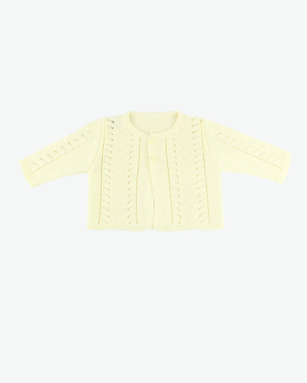 Confeccionada em tricô 100% acrílico antialérgico, a peça oferece um toque macio e confortável, indicado para a pele sensível do recém-nascido. A trama clean e vazada foi pensada para unir leveza, bem-estar e aconchego, respeitando a delicadeza desse início.